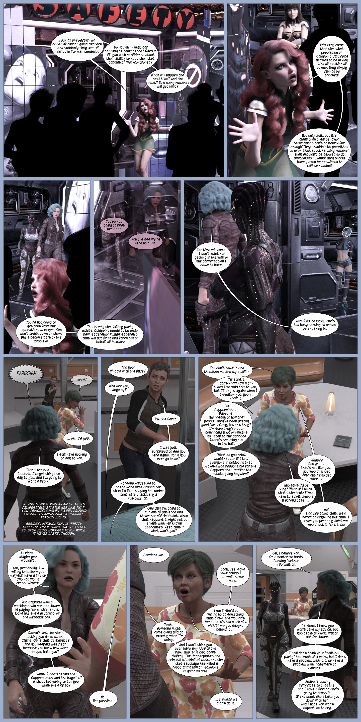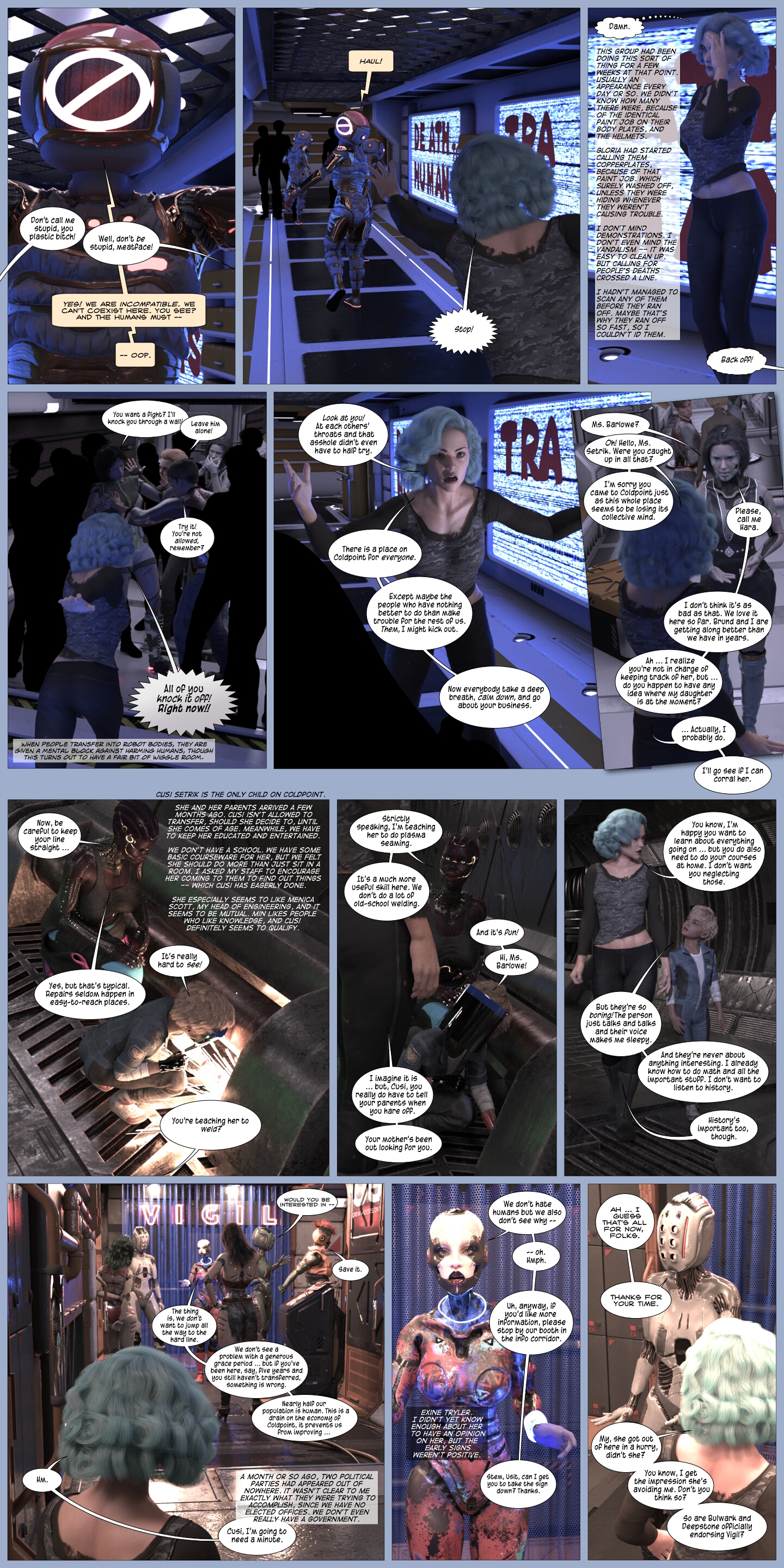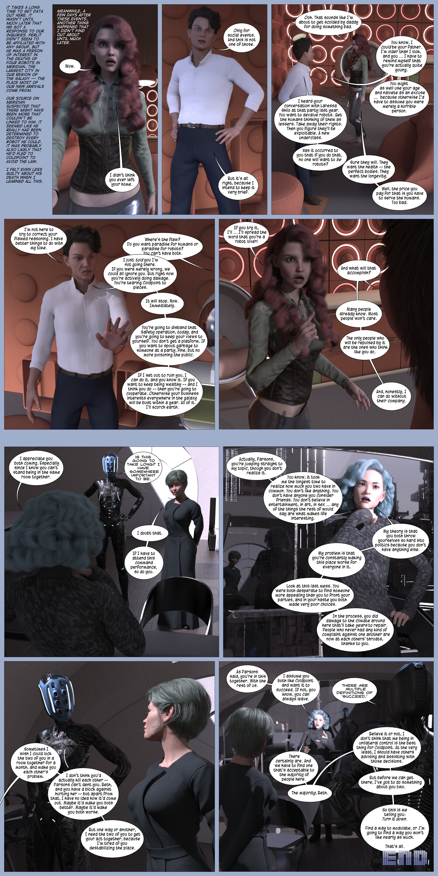 As the title says, this is mostly a lot of stray backstory maintenance and leftovers from the previous issue. It does, however, set the stage for at least two Big Things yet to come.