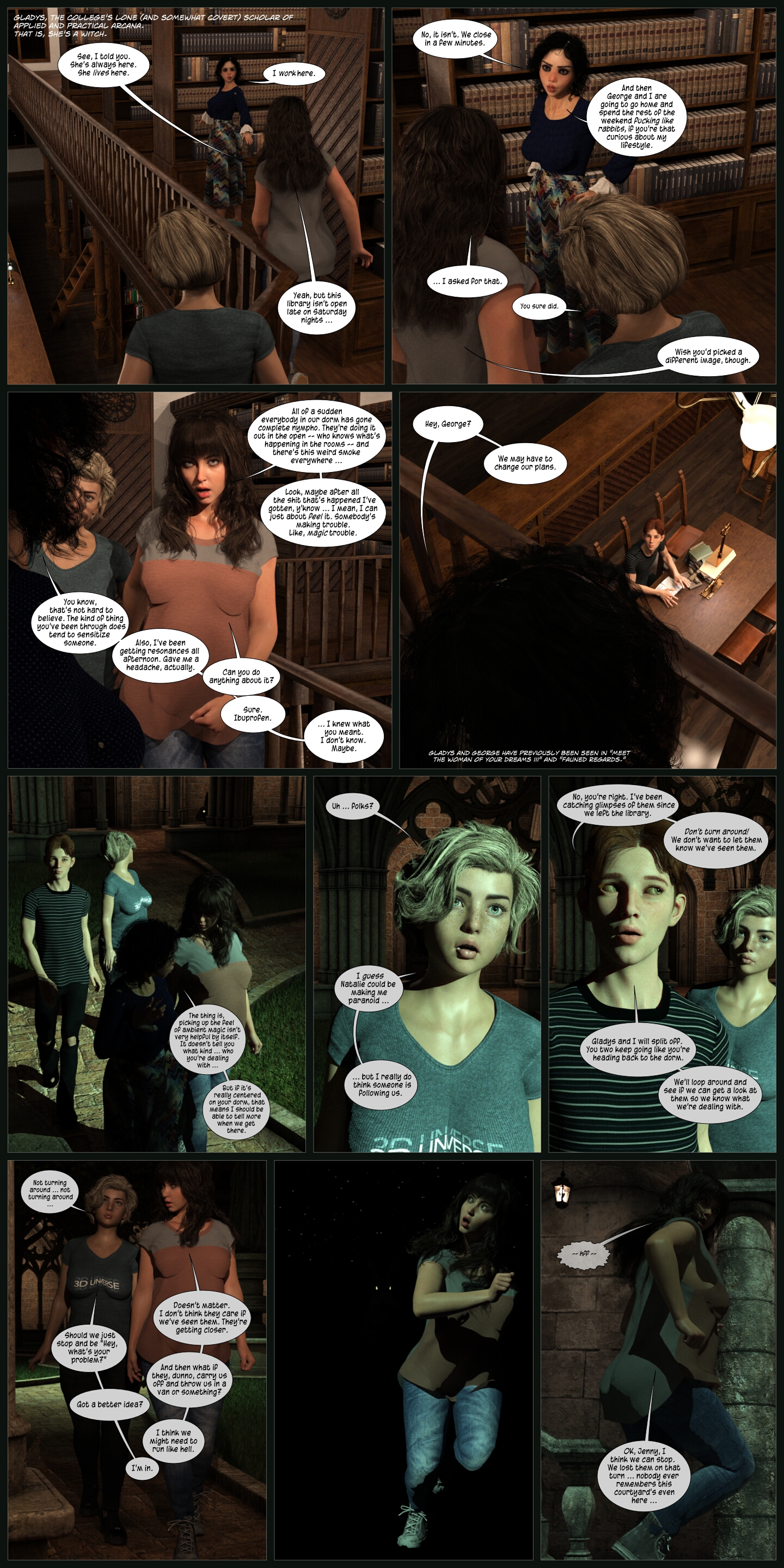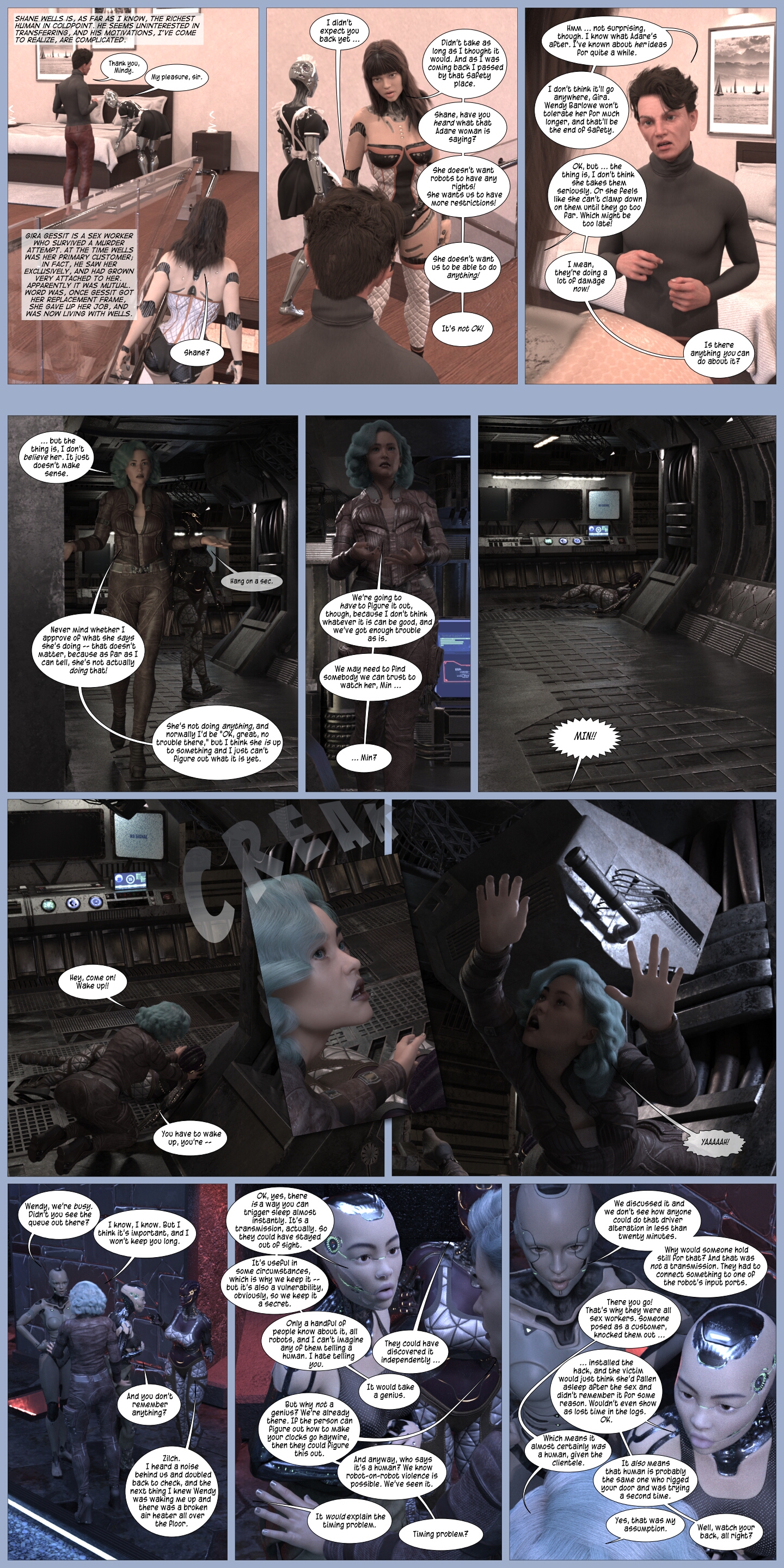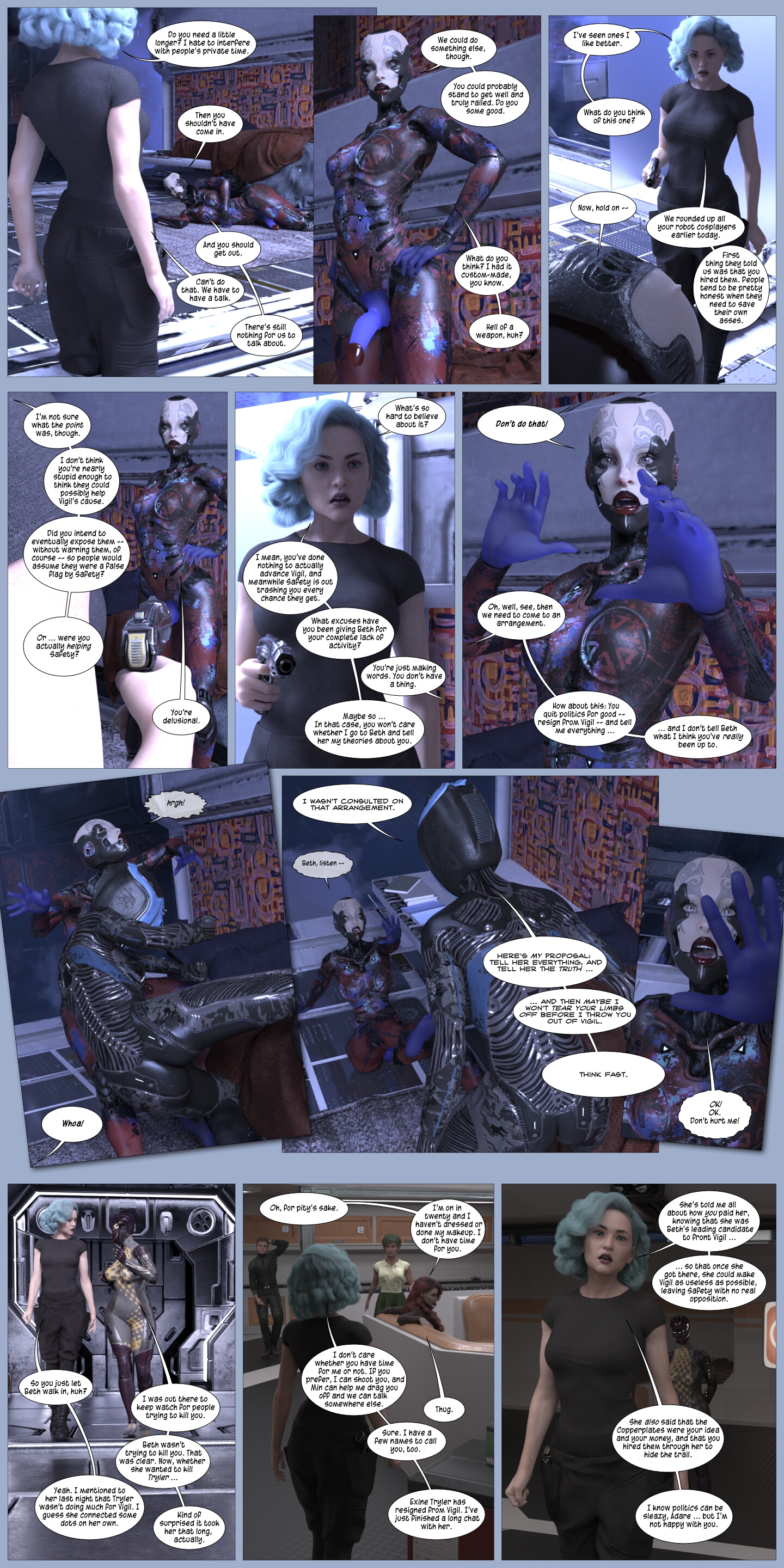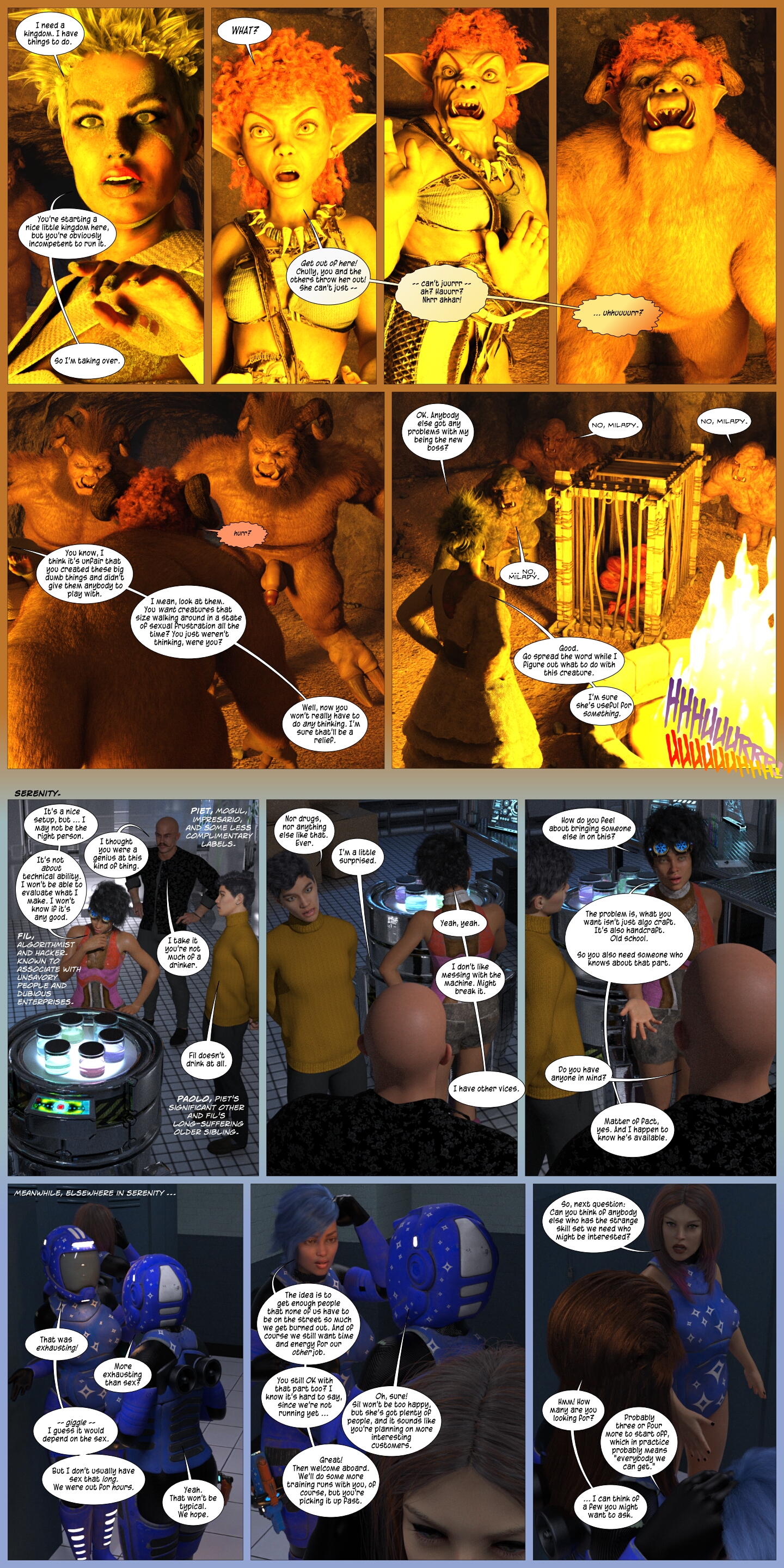 As the title says, this is mostly a lot of stray backstory maintenance and leftovers from the previous issue. It does, however, set the stage for at least two Big Things yet to come.