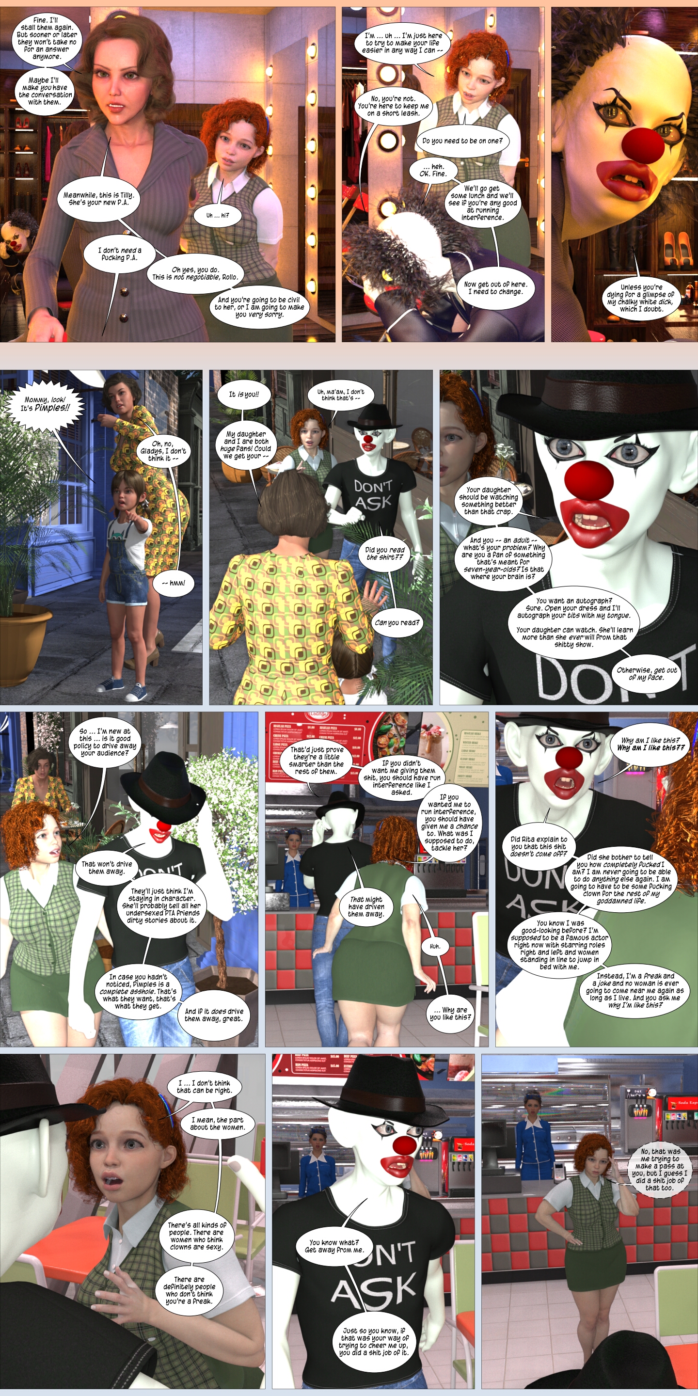 This was a light-relief story I did in a hurry after the ordeal of "The Dead Drop." Like several other relief-fluff stories I've done, it has no actual dialogue. It also has almost no actual plot. All you need to know is in the title.