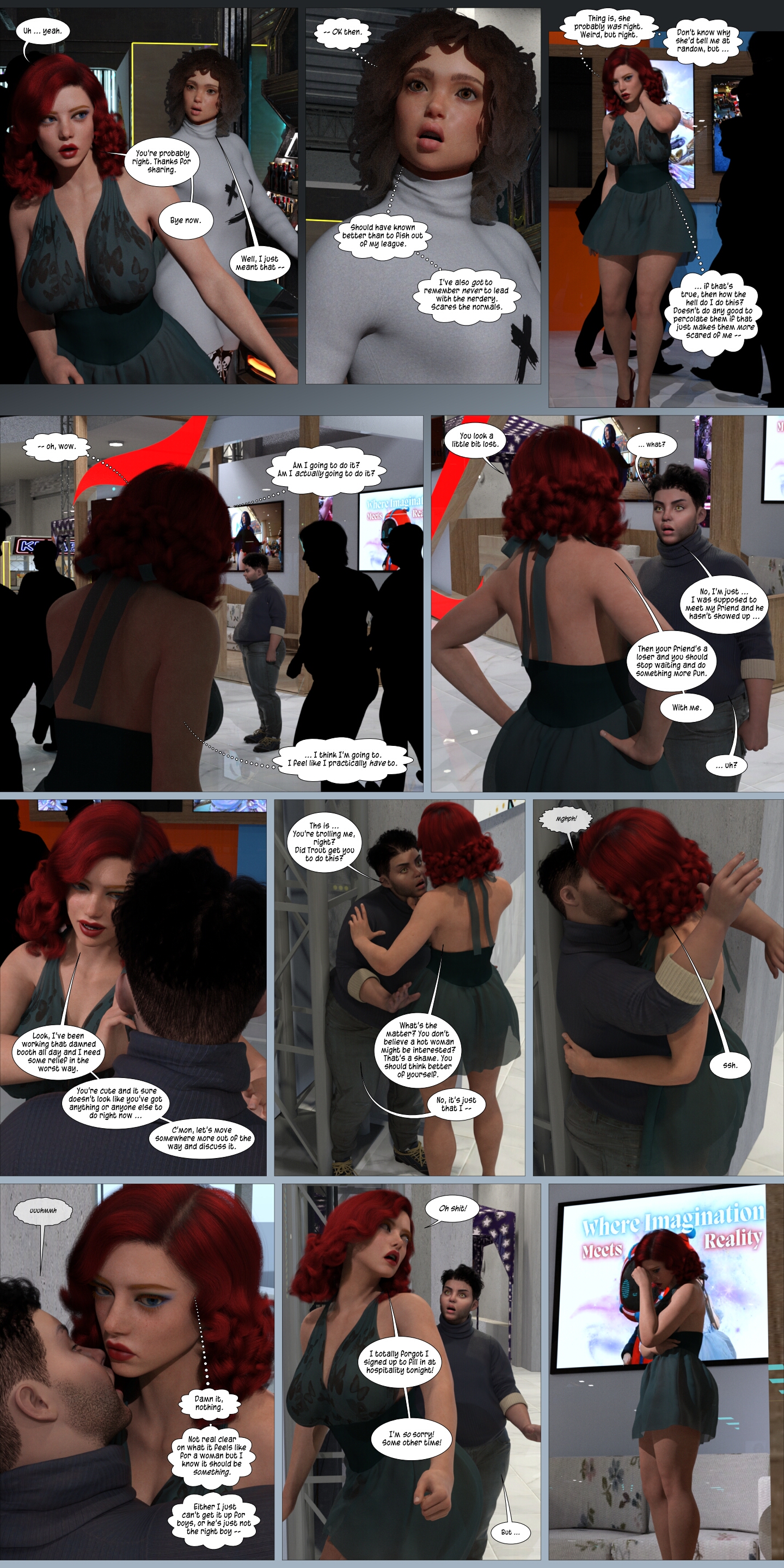 Five short stories, interspersed with bits of autobiographical material about my kink influences. I expected the latter part would put people off, and it probably did, but not much; this story has done very well in views on both DA and AO3. After this came out, a reader expressed regret that there was no TG content in here anywhere, and also there were some aspects of "Videodrones" that I felt needed a little elaboration; so a few days later I posted an add-on story, "Altered Status," which is the 'AS' page in the image list above.