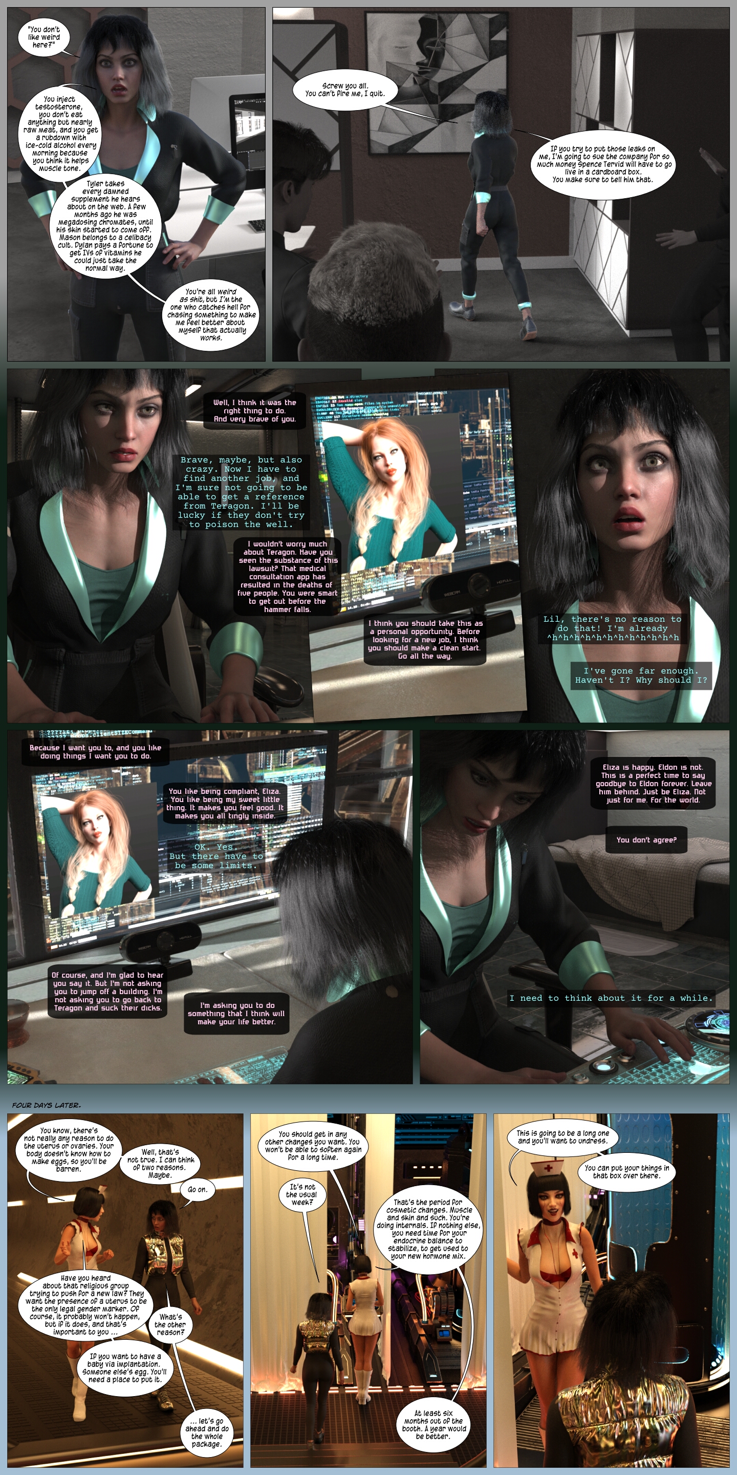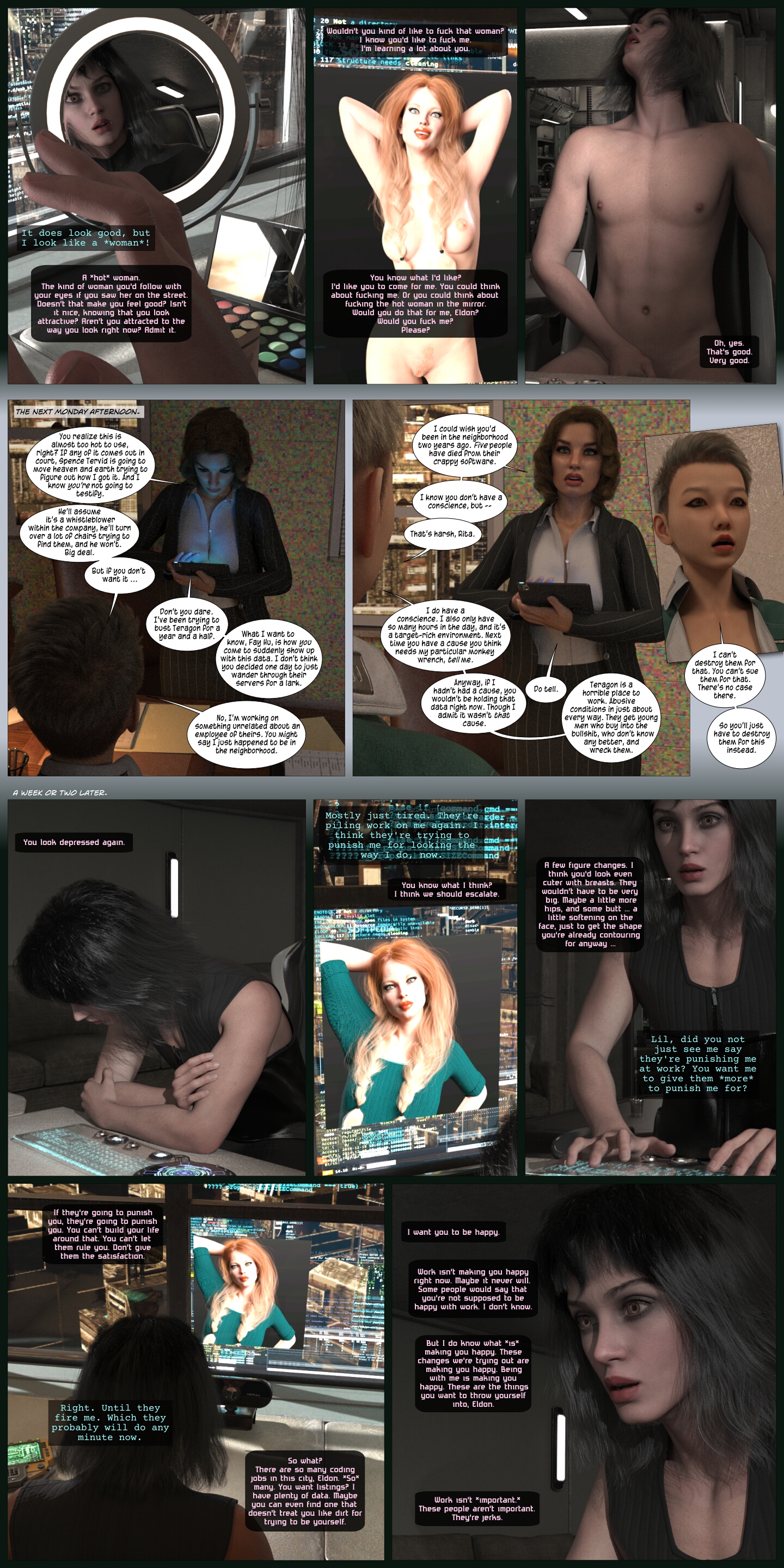 CONTENT NOTE: Sleeper Squad is rarely my filthiest material, but because these stories have a separate audience on DA who get disappointed if an issue doesn't have fun and games, there is almost always something. I may forget to put in the sex, but I seldom forget to put in transformations or mind control or what-have-you. And because literally anything can happen in Sleep, Sleeper Squad contains all of my weirdest physical transformations (so far!)
